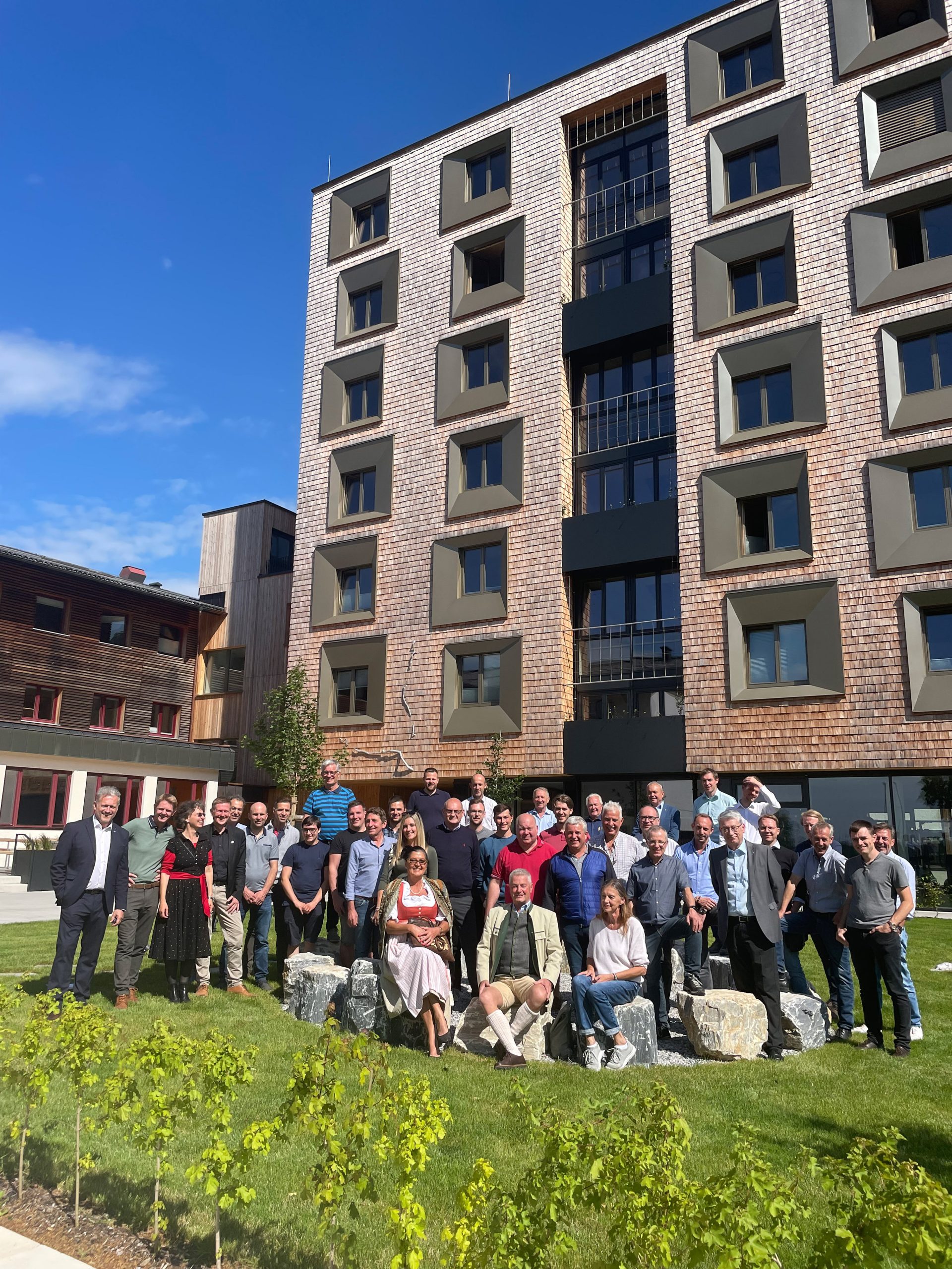 Am Holztechnikum Kuchl wurde die Absolventengruppe von HTK-Geschäftsführer Hans Rechner, Schulvereins-Präsident Wolfgang Hutter und dem Kuchler Bürgermeister Thomas Freylinger empfangen. Spannende Anekdoten zur Projektentwicklung folgte dann die Führung durch das neue und einzigartige neue Schülerinternat, dem HTK-Cube.