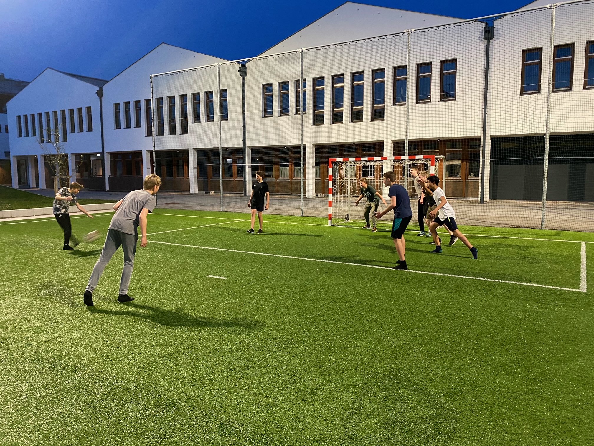 Jetzt geht es wieder los! Langsam steigen die Temperaturen wieder und damit auch das Fußballfieber. Die Internatsschüler der 1BH sind schon fleißig am Kicken. Durch die Flutlichtanlage wird der Kunstrasenplatz auch an den Abenden viel verwendet. Doch ohne Abstand geht nichts! Deswegen spielen die Schüler keinen normalen Fußball. Es wird „9 Monate gespielt“, das ist eine besondere Spielweise des Fußballs, wo es vor allem um Präzision geht und am wichtigsten, es gibt bei dieser Art des Fußballs keinen körperlichen Kontakt zwischen den Spielern/innen. Doch die Schüler freuen sich auch schon, wenn sie bald wieder „normal“ Fußball spielen dürfen.