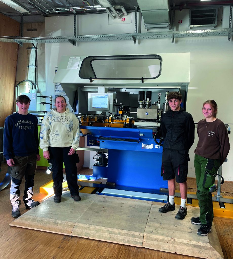 In den Werkstätten des Holztechnikums Kuchl hat man in diesem Jahr einen bedeutenden technologischen Zuwachs erhalten. Dank der langjährigen und partnerschaftlichen Zusammenarbeit mit ISELI & Co. AG Maschinenfabrik, Schoetz/CH, steht den Schülerinnen und Schülern in ihrer Ausbildung in der HTL und Fachschule nun ein vollautomatisches Richtzentrum des Typs RZ1 mit der neuen BNR100-Steuerung zur Verfügung. Rechtzeitig zu Schulbeginn wurde die Anlage geliefert und übergeben. „Wir bedanken uns herzlich bei Philipp Iseli, der uns dieses Gerät zu sehr fairen Konditionen zur Verfügung gestellt hat, um die Ausbildung der nächsten Generation von Holztechnikern und Nachwuchsführungskräften zu fördern“, berichtet Hans Rechner, Geschäftsführer des Holztechnikums Kuchl. „Mit dieser Investition wird die Schärftechnik am Standort Kuchl weiter massiv gestärkt. Das Richtzentrum ist entscheidend für die Qualität im Sägewerk, damit ein präziser Schnitt beim Arbeiten erreicht werden kann“, erklären der Werkstättenleiter des Holztechnikums Kuchl Alexander Schuster und Iseli-Salespartner Jürgen Ritschel.