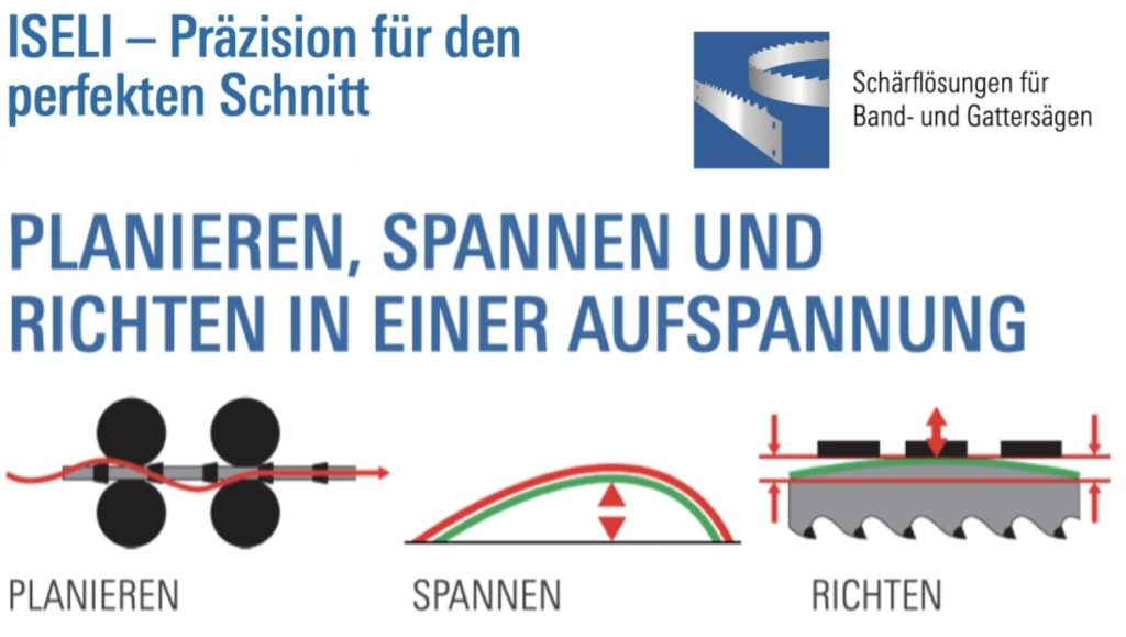 Das neue Iseli Richtzentrum übernimmt den komplexen Prozess vollautomatisch: Die RZ1/BNR100 misst die Blockbandsäge hinsichtlich Unebenheiten (Dellen & Beulen) und Spannung aus und walzt die Unebenheiten mit hoher Präzision heraus und bringt wieder die Spannung an der richtigen Stelle ins Sägeblatt. Dieses Richtzentrum ergänzt somit die vollautomatische Bandsägen-Formschleifmaschine BNP 100 von Iseli, die im Vorjahr am Holztechnikum Kuchl in Betrieb genommen wurde. „Die Integration der BNP 100 in unseren Schulungsbetrieb ist ein entscheidender Schritt, um die Qualität und Aktualität unserer Ausbildung in der Sägewerkstechnik zu gewährleisten“, berichtet Alexander Schuster.