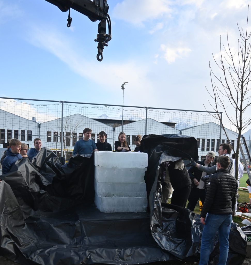 Auf dem Gelände des Holztechnikums Kuchl fiel der Startschuss für die Eisblockwette 2.0, ein gemeinsames Forschungs‑ und Bildungsprojekt der Firma STO und der HTL Kuchl. Dabei wurde ein rund 2.000 kg schwerer Natureisblock aus dem Weissensee in eine speziell entwickelte, hochgedämmte Holzkonstruktion eingebettet. Ziel ist es, über einen Zeitraum von 75 Tagen zu messen, wie viel Eis trotz natürlicher Witterungseinflüsse erhalten bleibt.