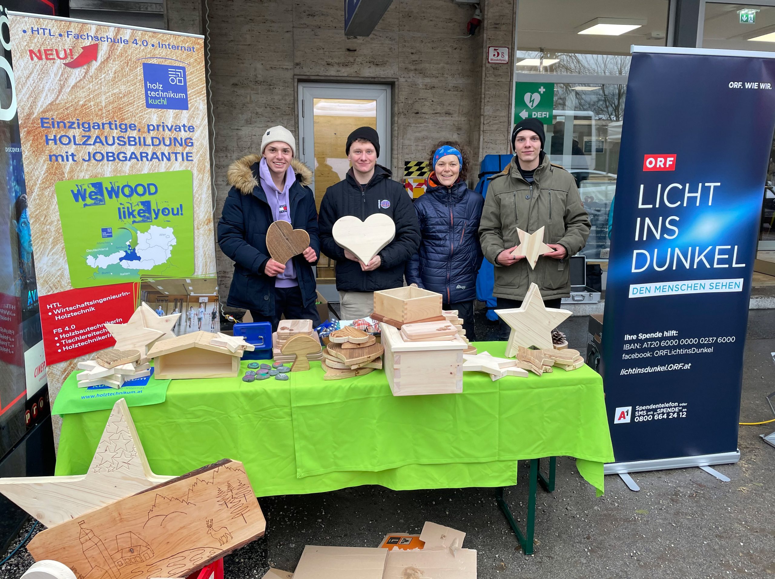 In einer vorbildlichen Initiative setzen sich die Schülerinnen und Schüler des Holztechnikums Kuchl (HTK) erneut dafür ein, ihrer Gemeinschaft etwas zurückzugeben. Mit ihrer handwerklichen Geschicklichkeit und Kreativität haben sie eine Vielzahl an Holzdekoartikeln hergestellt, um den Sozialfonds der Schule zu stärken und die ORF-Hilfsaktion „Licht ins Dunkel“ zu unterstützen.
