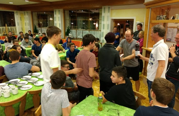 Als Abendprogramm gab zum Abschluss es einen Mehrkampf mit 7 Disziplinen. Dann konnten wir in die Sauna gehen oder im Zimmer chillen. Da es die letzte Nacht war nahmen die Lehrer und Schüler es mit der Schlafenszeit nicht sehr genau. Die Lehrer sangen bis spät in die Nacht 😉